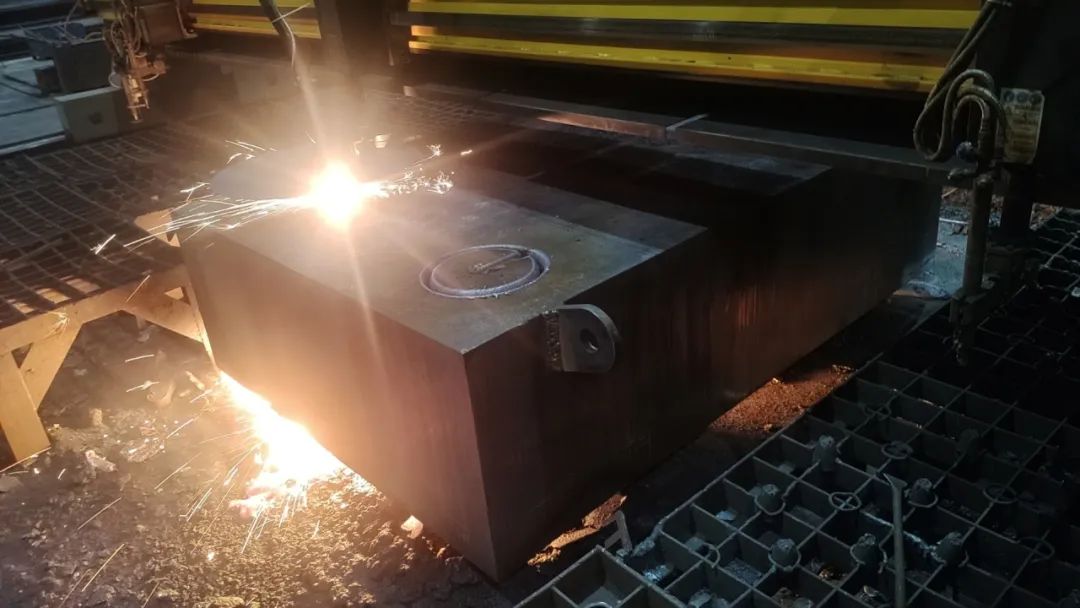 不斷創新,不斷突破,2024年9月4日,公司再傳喜訊。繼公司成功突破 700mm 超厚零件外形切割技術后,又實現了 770mm 超厚零件 ?390 內孔的切割,再度書寫超厚鋼板切割領域的嶄新篇章!
